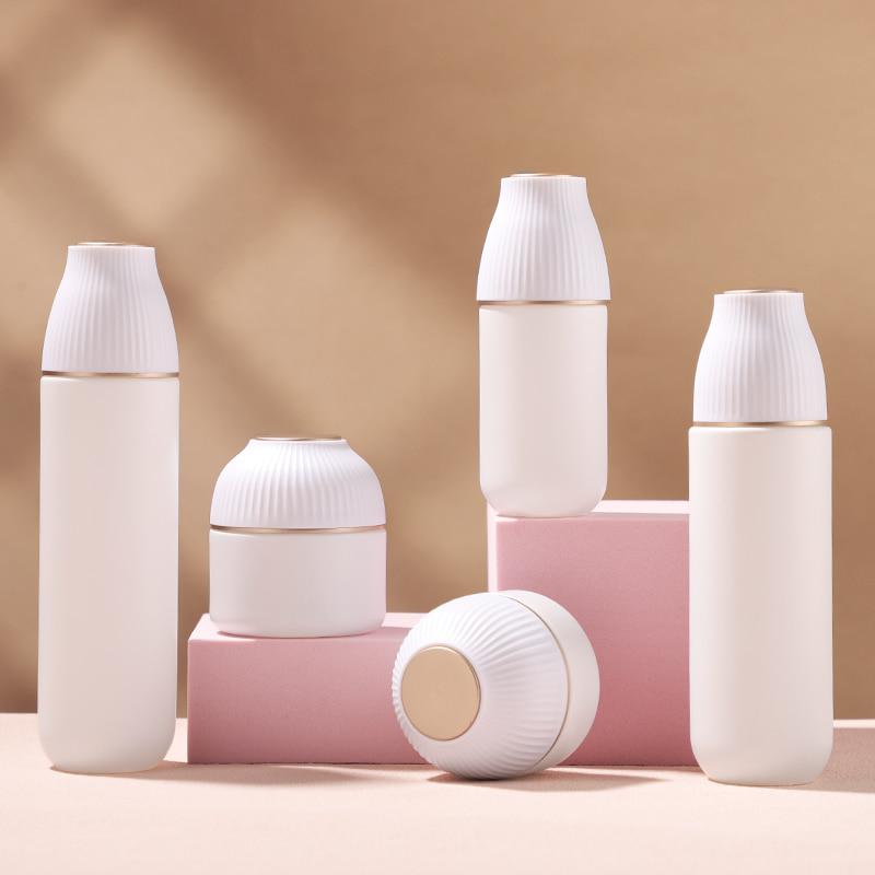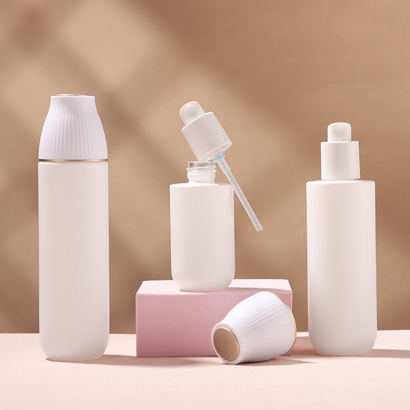 20Поднимите упаковку вашего элитного бренда косметики на новый уровень с помощью нашего изысканного набора стеклянных флаконов для средств по уходу за кожей. Роскошная косметическая упаковка, сочетающая в себе структурную целостность и художественные инновации. В наборе представлены флаконы разных размеров (например, 50 мл, 100 мл, 120 мл, 30 г и 50 г). Уникальная крышка с вертикальными полосами создает выразительный внешний вид на полке, выделяя продукт на конкурентном рынке косметики. Этот набор выделяется своим фирменным дизайном горлышка с вертикальными ребрами и чистой белой отделкой, обеспечивая элегантный, современный вид, который привлекает внимание на полках магазинов.